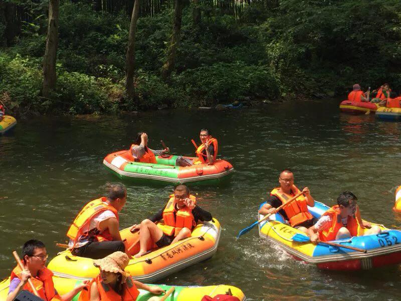 青龍雙河漂流水質優良,清澈見底,河水湍急,驚險刺激,兩岸都是樹木,十分清涼。大家玩得不亦樂乎,歡笑陣陣。