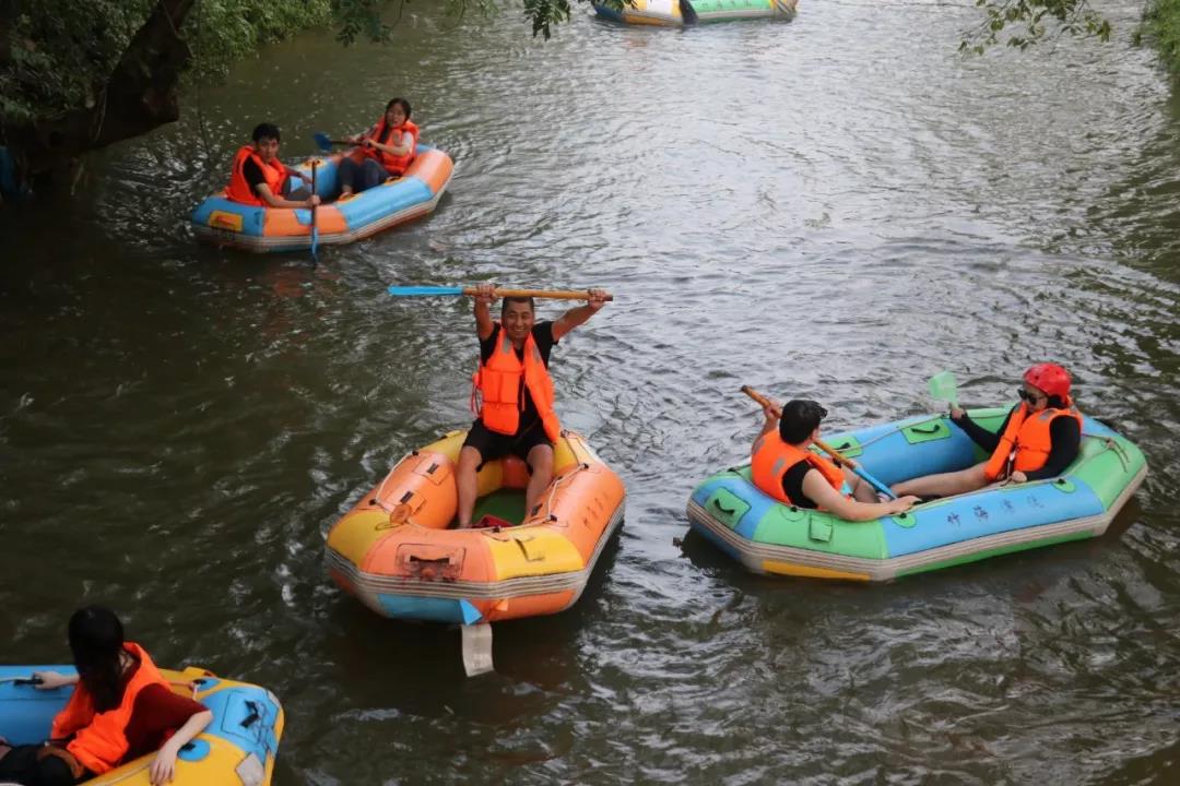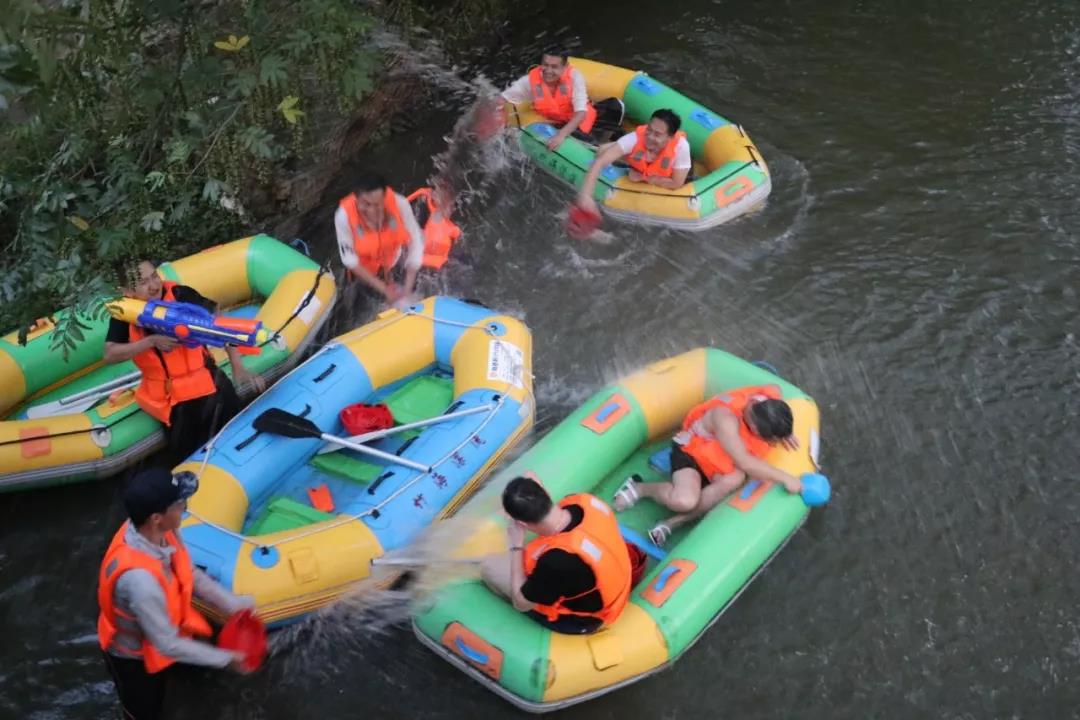 下午全體員工領(lǐng)好安全帽和救生衣,拿好船槳開始了竹海漂流活動(dòng),在時(shí)而湍急時(shí)而平緩的水流中漂流艇順流而下,同事們打起水戰(zhàn),在驚險(xiǎn)刺激的漂流中品味著江南小村莊的韻味,感受到了更多的刺激和歡樂。